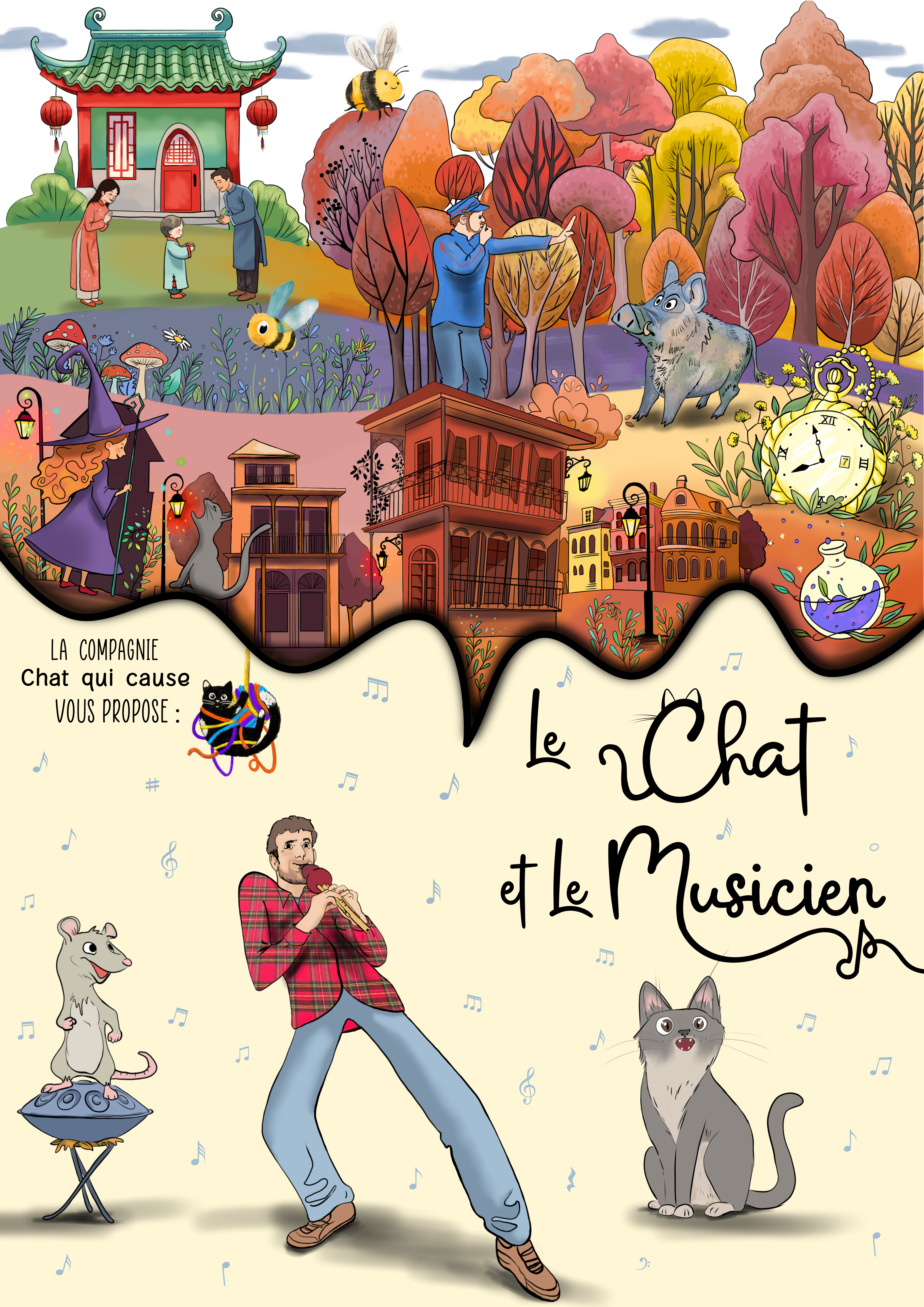Chat qui cause est une compagnie de création jeune public qui s’est révélé à travers le théâtre de rue mais aussi grâce à des influences culturelles et des représentations musicales d’horizons très variés. Cette diversité modèle les créations, qui sont toujours jouées dans un esprit de poésie et d’ouverture pour faire voyager et découvrir.